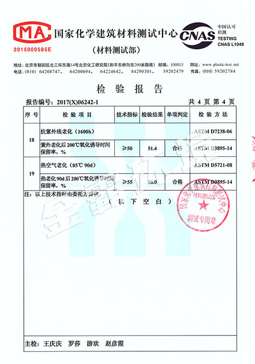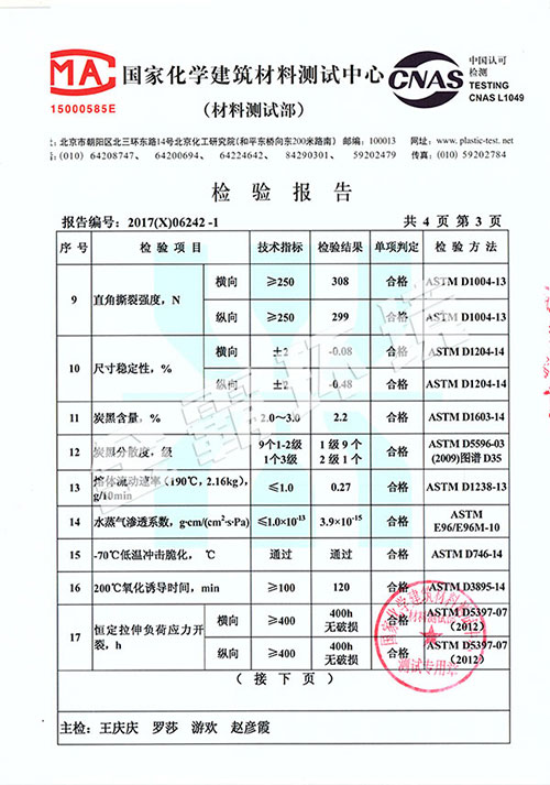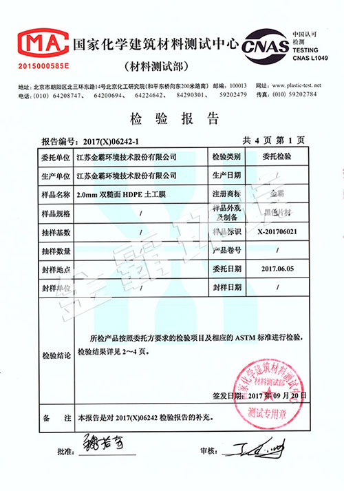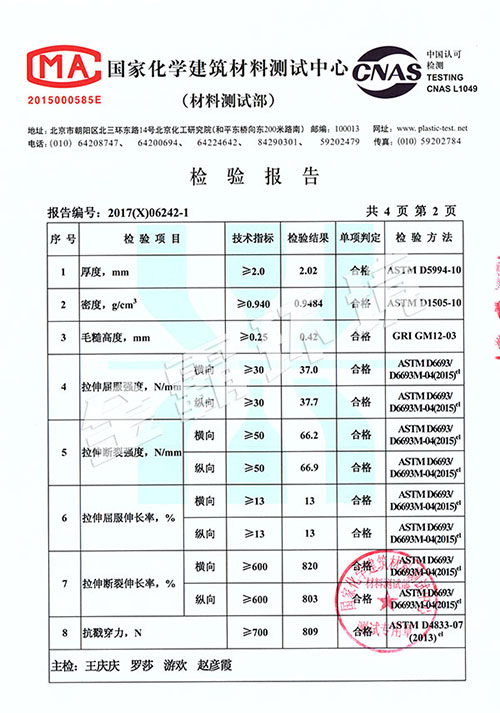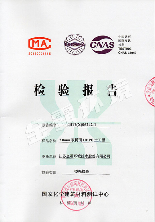 HDPE雙糙面膜檢測報告